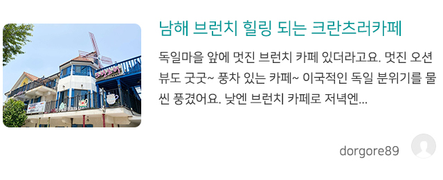 최고의 전망을 자랑하는 크란츠러 카페는 남해 독일마을, 원예예술촌, 다랭이마을, 미조항, 보리암 등